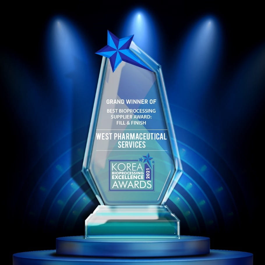 We are delighted to share that West has been honored at the Korea Bioprocessing Excellence Awards (KBEA) for the second year in a row. This year, we were recognized as the grand winner of the Best Bioprocessing Supplier Award: Fill-Finish.
